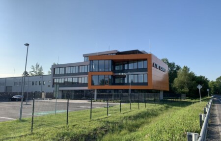 Fotografie výstavby nového administrativně výrobního komplexu na ulici Střádalů v Ostravě-Kunčičkách.
