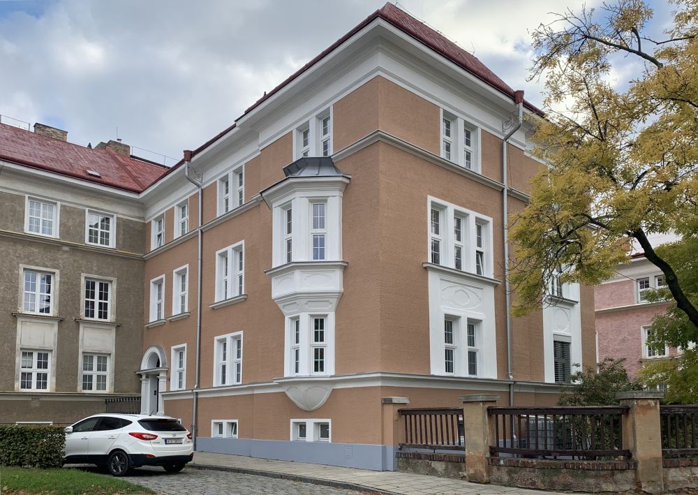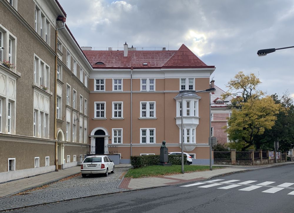 Fotografie dokončené obnovy fasády bytového domu na ulici Boženy Němcové v Opavě.