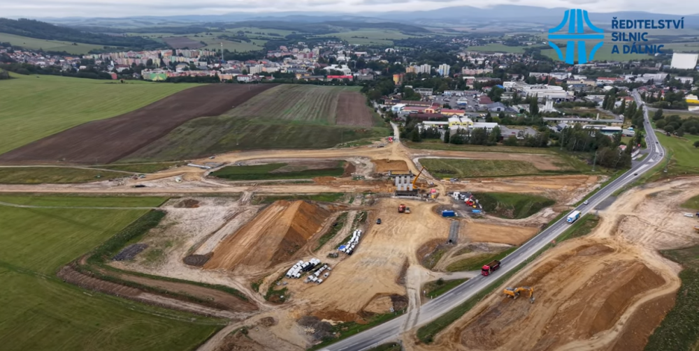 Záběry z dronu zachycující výstavbu východního obchvatu města Bruntál, I. etapa. Záběry byly pořízeny v září 2025.