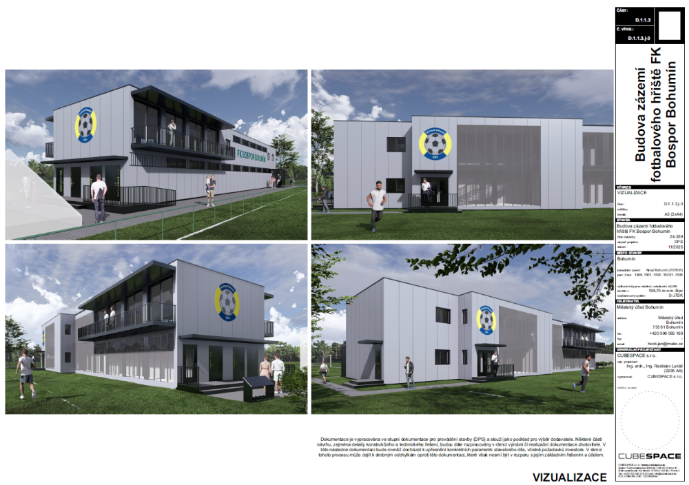 Bohumín vypsal veřejnou zakázku „Modulární výstavba: ´´Budova zázemí fotbalového hřiště FK Bospor Bohumín II´´.