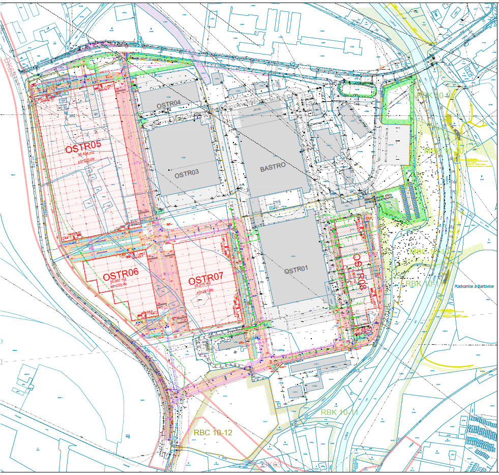 Předmětem záměru je realizace nových stavebních objektů OSTR05, OSTR06, OSTR07 a OSTR08.Dominantami areálu jsou logistické a průmyslové haly. Nové halové objekty jsou navrhovány jako univerzální výrobně skladovací objekty v technickém a materiálním standardu společnosti CTP. Vlastní umístění a orientace hal vychází z prostorových limitů území, morfologie terénu, ochranných pásem inženýrských sítí, polohy a směrů hlavních areálových komunikací a pozic stávajících objektů.