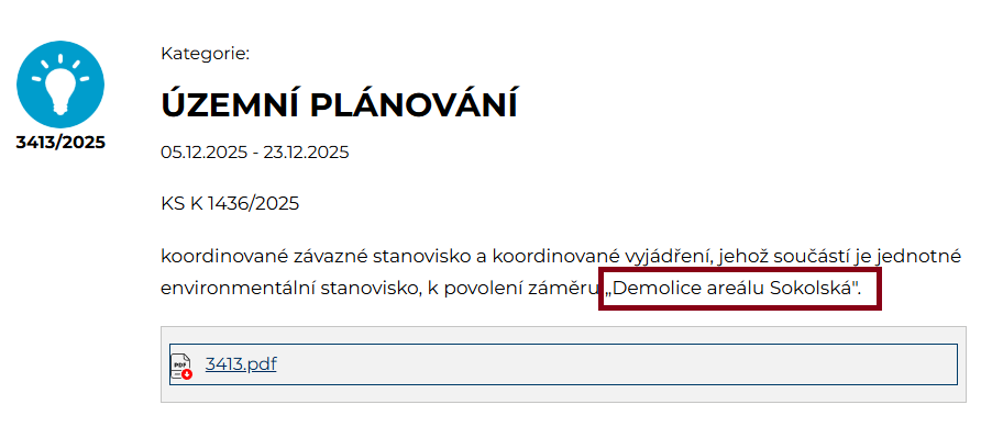 Ondřej: „Demolice areálu Sokolská“ je název záměru v rámci úředního řízení…