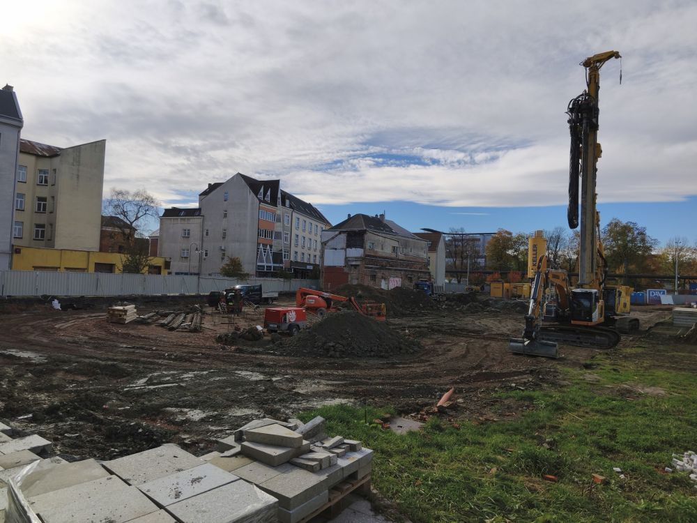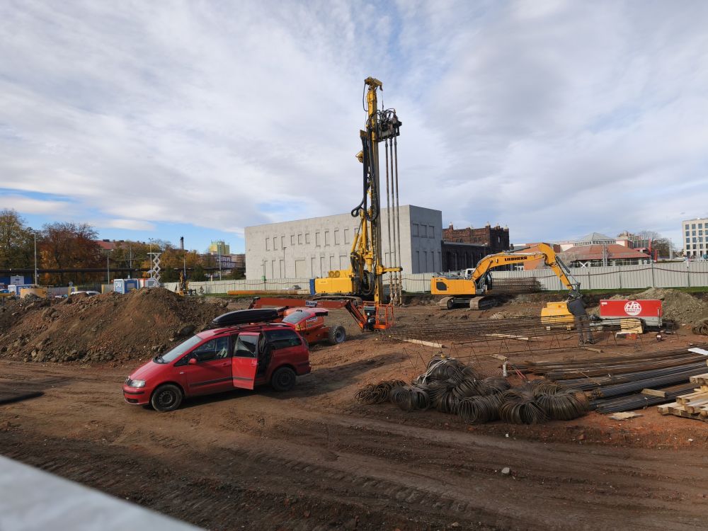 Zbylá část objektů městských jatek v centru Ostravy je již zdemolována a v místě probíhá pilotáž základových konstrukcí pro projekt s názvem Rezidence Stodolní.