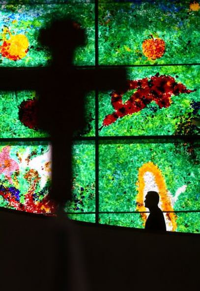 První z vitráží, které se dělají speciální fúzní technologií a patří k největším na světě, byly v kostele umístěny v roce 2007. Celkem vitráží váží kolem 4,6 tuny a jsou jedny z největších na světě. vytvořenou fúzovanou technologií. Vitráže vznikaly postupně.
