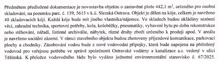 Tohle je prostě hrůza. Já vůbec nechápu obecně úroveň této lokality, která je u řeky, u centra, zároveň blízko k lukrativní čtvrtí na ulici Keltičkova. Jako by nebylo dostatek ploch jinde. Chyba byla už od revoluce, že tam město povolilo sklady. Celou lokalitu to odrovnalo na dekádu a teď to jenom pokračuje. Původní záměr na automyčku nevyšel, tak uděláme mini sklady. Dle územního plánu je definice území – občanská vybavenost. Na jednu stranu územní plán reguluje kde můžu postavit byty, následně omezení na výšku a podobně a na druhou stranu je tady TOP lokalita, která prostě leží v územním plánu ladem. Smutné.