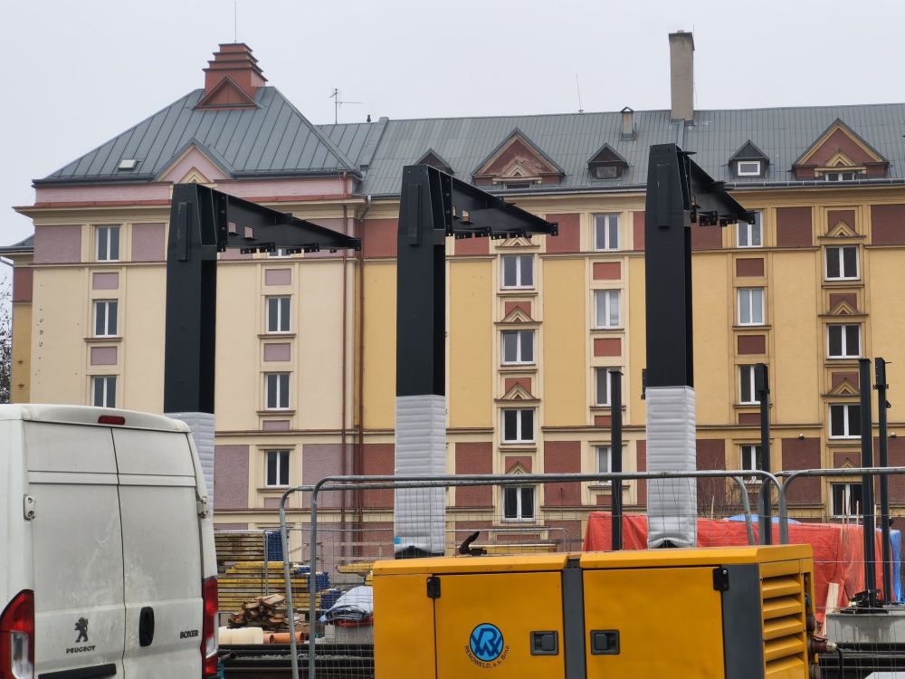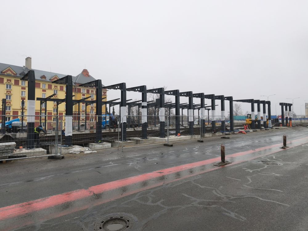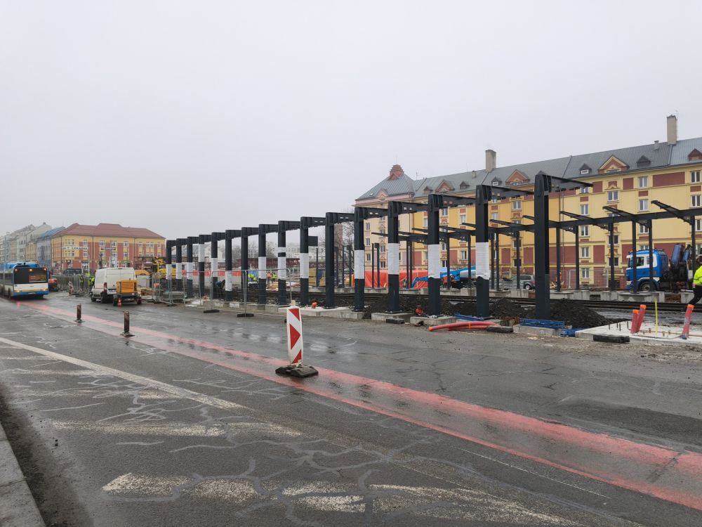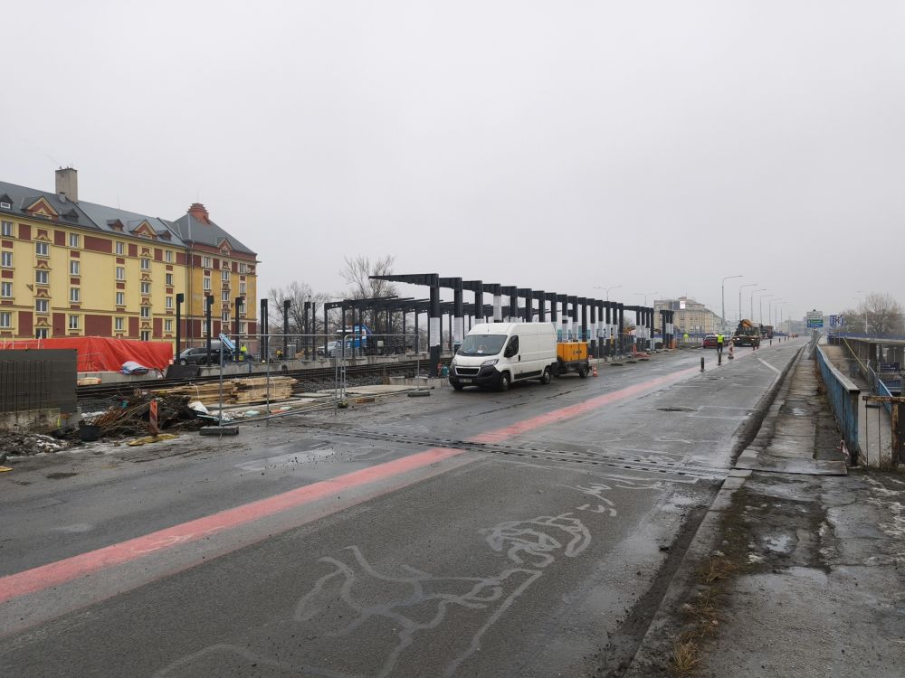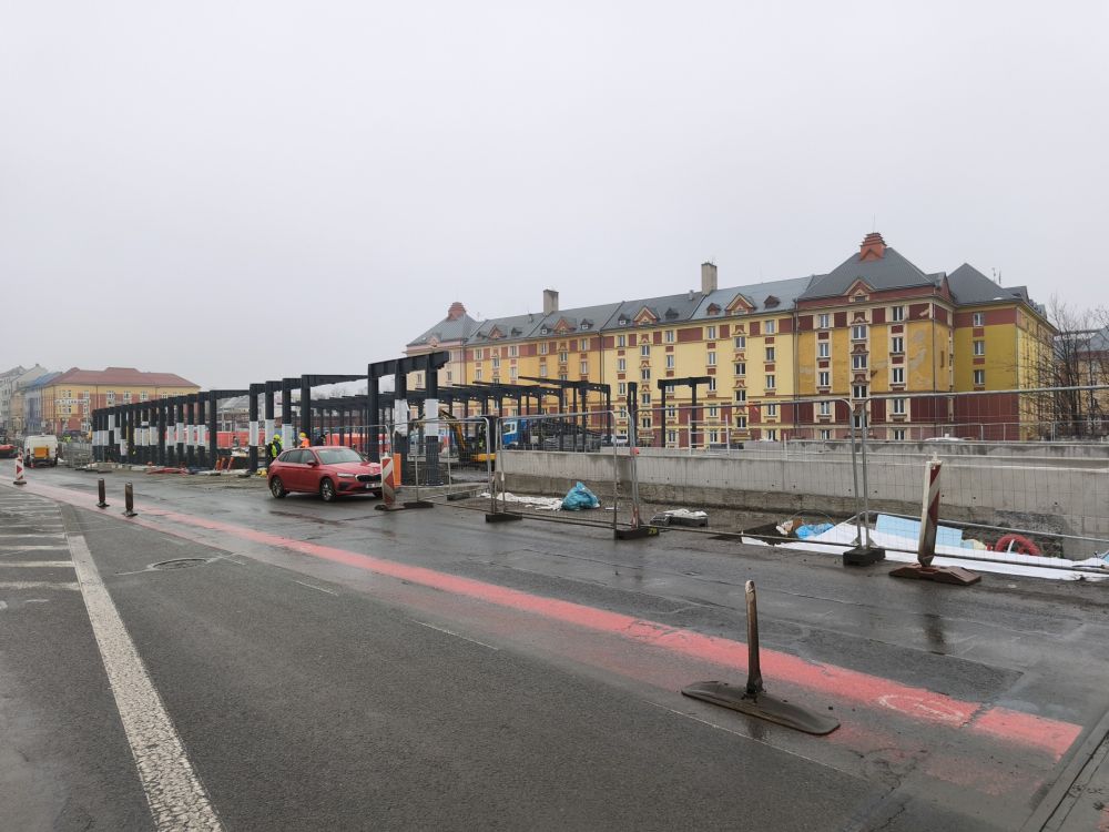 Nově budovaná dočasná nástupiště na ulici Vítkovická.