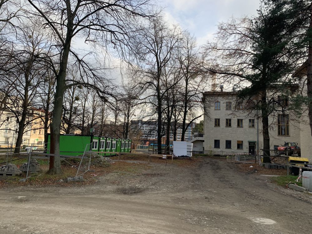Aktuální fotografie „realizace“ Fáze 1 Koncertní haly města Ostravy. V místě novostavby neprobíhá žádná stavební činnost. Stavební práce probíhají uvnitř stávajícího objektu.
