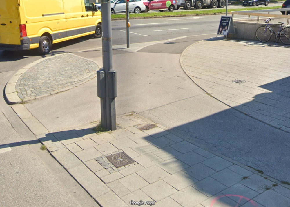 Upřímně, řešení detailů pomocí kamenných kostek se mi příliš nelíbí. Preferuji, pokud je to možné, dokončení detailů pomocí dořezu dlažby. V případech, kdy to možné není – například u lampy na fotografii z Mnichova – bych upřednostnil dobetonování.(Snad nebudu ukamenován za vlastní názor od Martina)