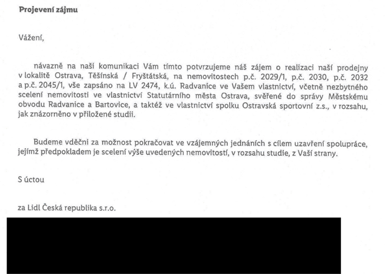 Zastupitelstvo město Ostravy na svém zasedání dne 17. září 2025 schválilo záměr prodeje pozemků v Ostravě-Radvanicích za účelem výstavby prodejny potravin Lidl.