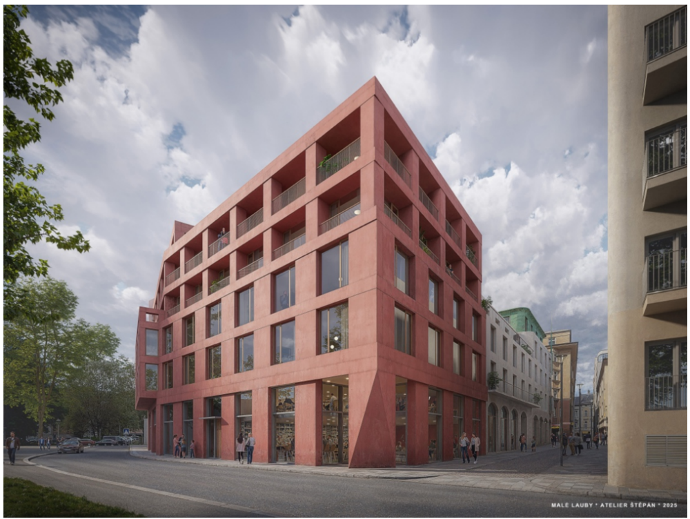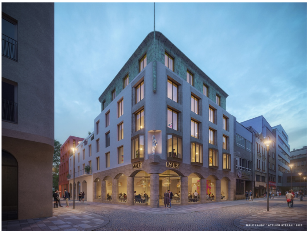 Nové vizualizace jsou součástí podkladů k jednacímu bodu. Za návrhem nyní stojí renomovaný Ateliér Štěpán. Nová podoba navrhovaných objektů lépe reflektuje jak regulační podmínky, tak dané místo s odkazem na historii lokality. Materiálově působí navržené objekty rovněž na vyšší úrovni. Oproti nedávno dokončenému projektu Nové Lauby je komerční parter otevřen i do ulice Pivovarská.