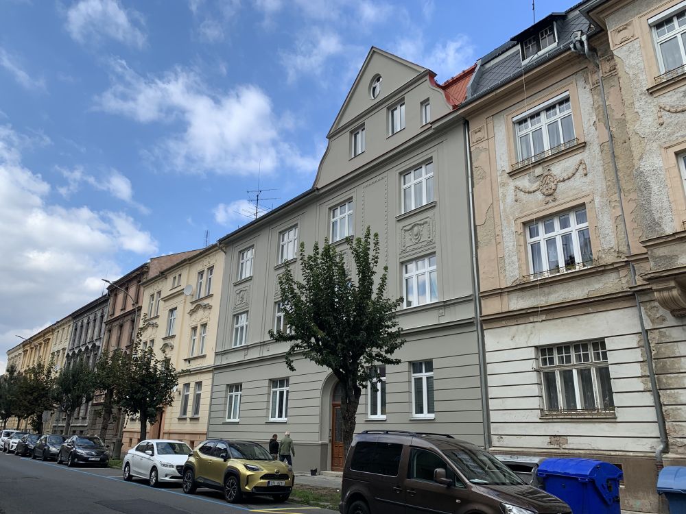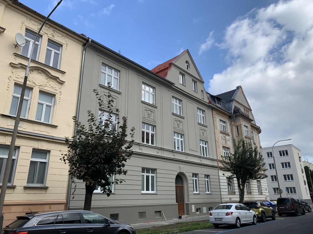 Fotografie obnovy fasády historického bytového domu na ulici Mírová v Opavě.