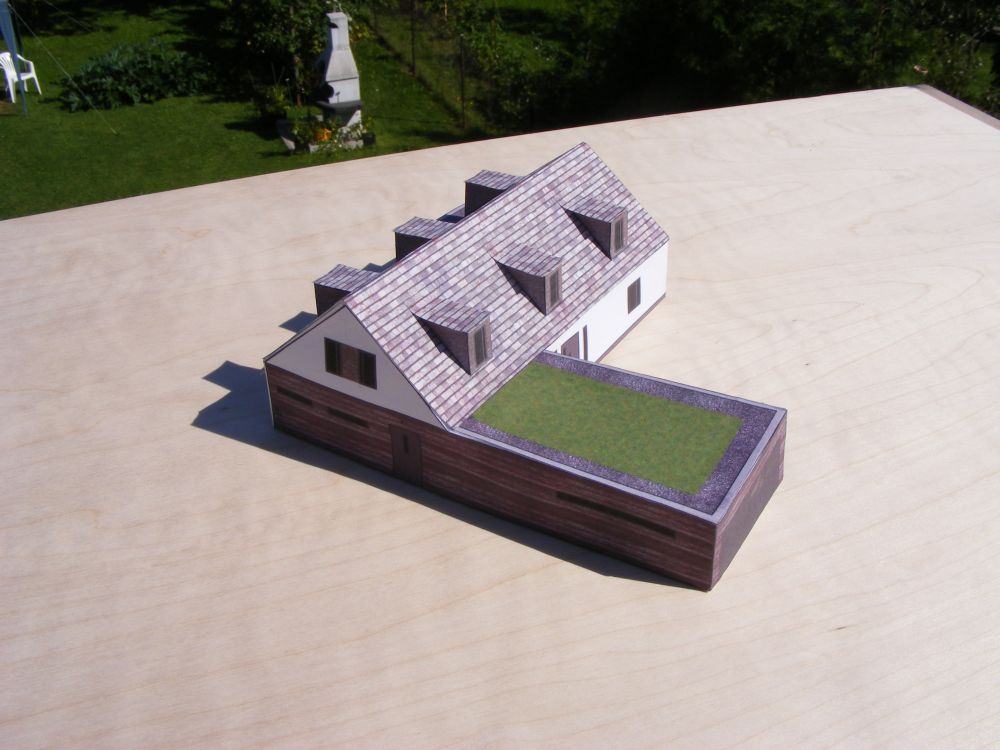 Model RD. V přízemí by mněly být: garáž, tech. zázemí, vstupní hala, wc, obývací pokoj a kuchyň. V patře potom ložnice, koupelna, wc a dva pokoje. Obklad na garáží je dřevo. U oken to je kámen. Je to dělané v malování , tak to berte trochu s rezervou. Opět jak minule bych poprosil o okomentování ( jak se vám líbí / nelíbí , názory apod. ).