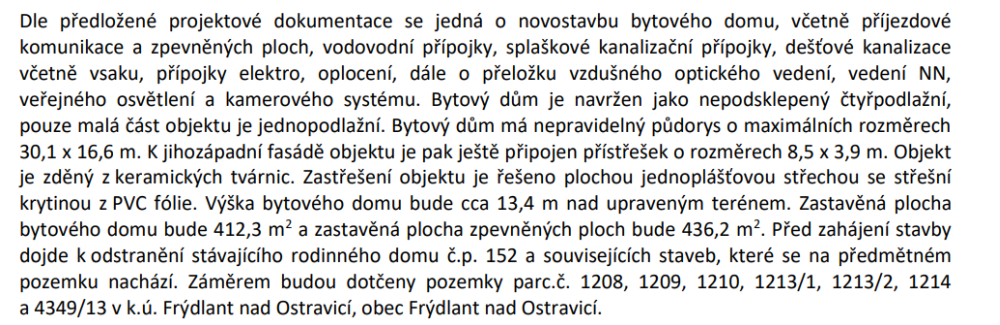 Soukromý investor plánuje ve Frýdlantě nad Ostravicí, ulice Hlavní, vybudovat bytový dům.