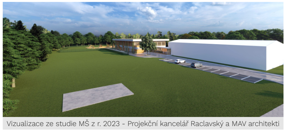 Zásadním přínosem nové MŠ je sjednocení provozu školky, který je nyní v 2 různých objektech, do jednoho moderního objektu s plnohodnotnou zahradou a kvalitním venkovním zázemím, které dětem umožní pobyt venku i v odpoledních hodinách. Výhodou je také blízkost hřiště v lesoparku, které rozšiřuje možnosti venkovních aktivit. V této budově budou v obou patrech zřízeny výdejny stravy, které budou dostatečně prostorné pro personál. Strava bude připravována v kuchyni základní školy, jejíž kapacita bude po rekonstrukci schopna zvládnout uvařit jak pro základní i novou mateřskou školu, tak i pro cizí strávníky.Budova bude navržena jako energeticky úsporná s využitím moderních technologií a kvalitních stavebních materiálů. V říjnu 2024 proběhlo výběrové řízení na zpracování projektové dokumentace. Do soutěže se přihlásilo pět zájemců, z nichž 3 splnili podmínky zadání. Hodnocení probíhalo podle čtyř kritérií: 1. cena projektové dokumentace (45 %), 2. cena výkonu dozoru projektanta (5 %), 3. analýza rizik (30 %) a 4. návrhy vylepšení (20 %). Hodnocené nabídky najdete v přiložené tabulce. Na základě hodnocení komise byla vybrána společnost Atelier 99 s.r.o., se kterou byla uzavřena smlouva na zpracování projektové dokumentace pro povolení a provádění stavby a současně smlouva o výkonu autorského dozoru. Obec na zpracování dokumentace získala dotaci Ministerstva pro místní rozvoj ve výši 6,6 mil. Kč.