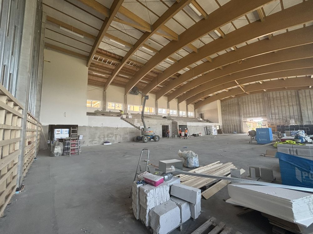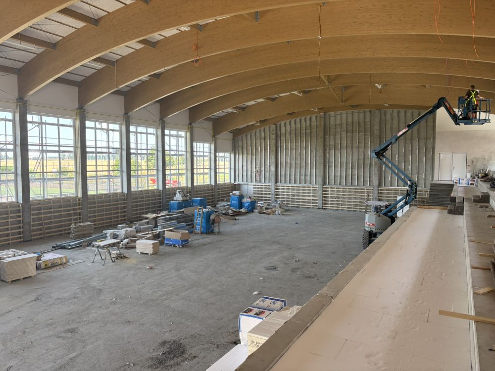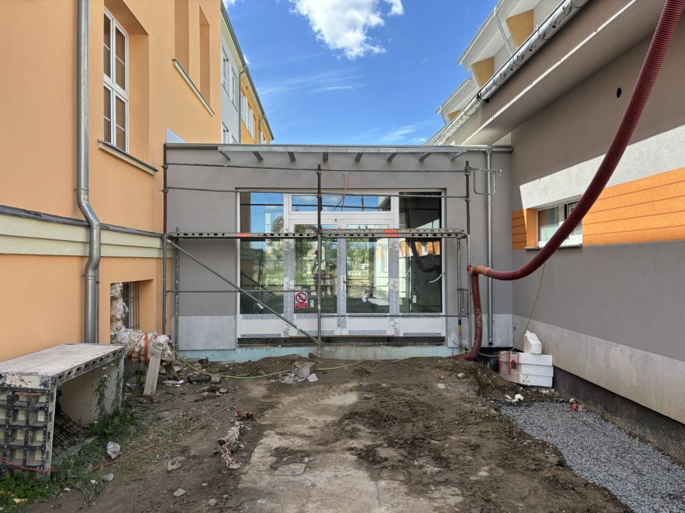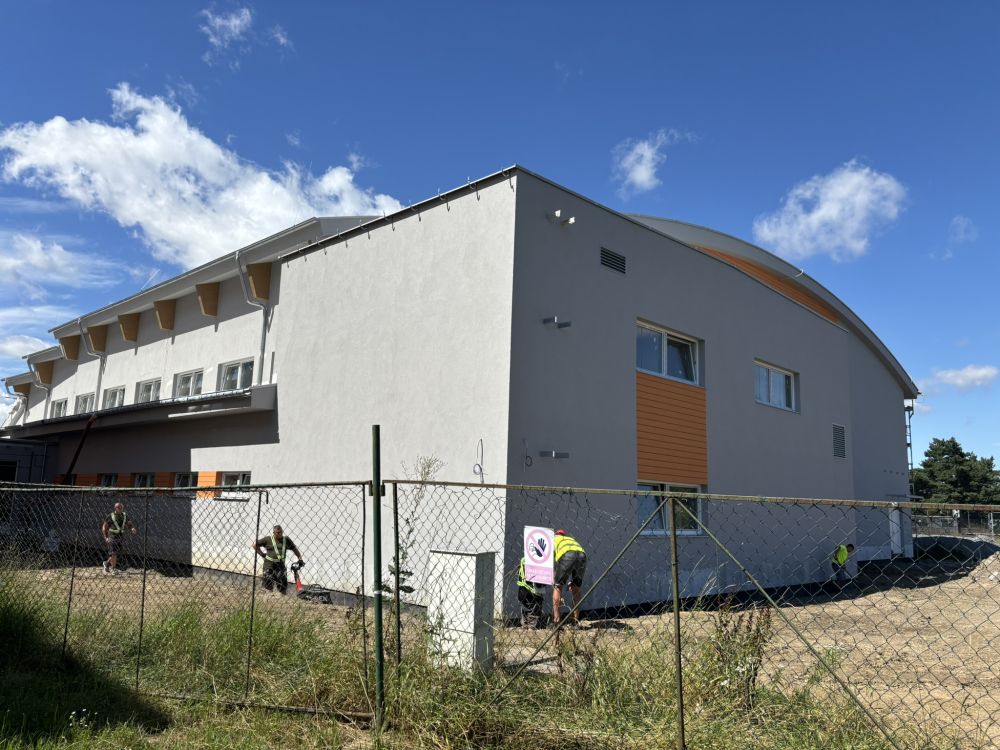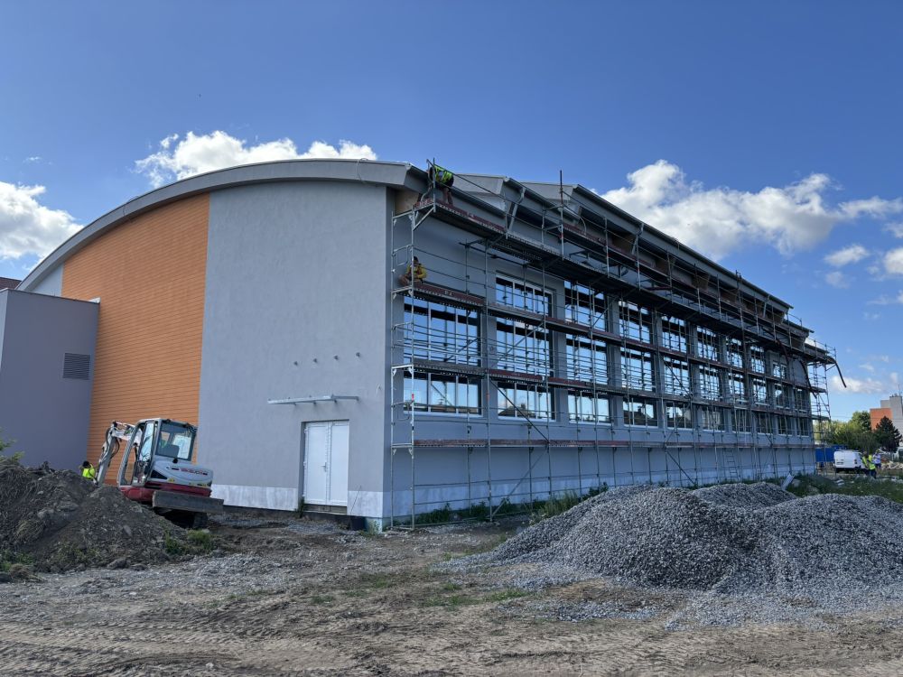 Fotografie výstavby nové tělocvičny při ZŠ v Dolním Benešově.