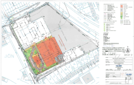 Výstavba nosné konstrukce obchodního centra a podzemního parkoviště.
