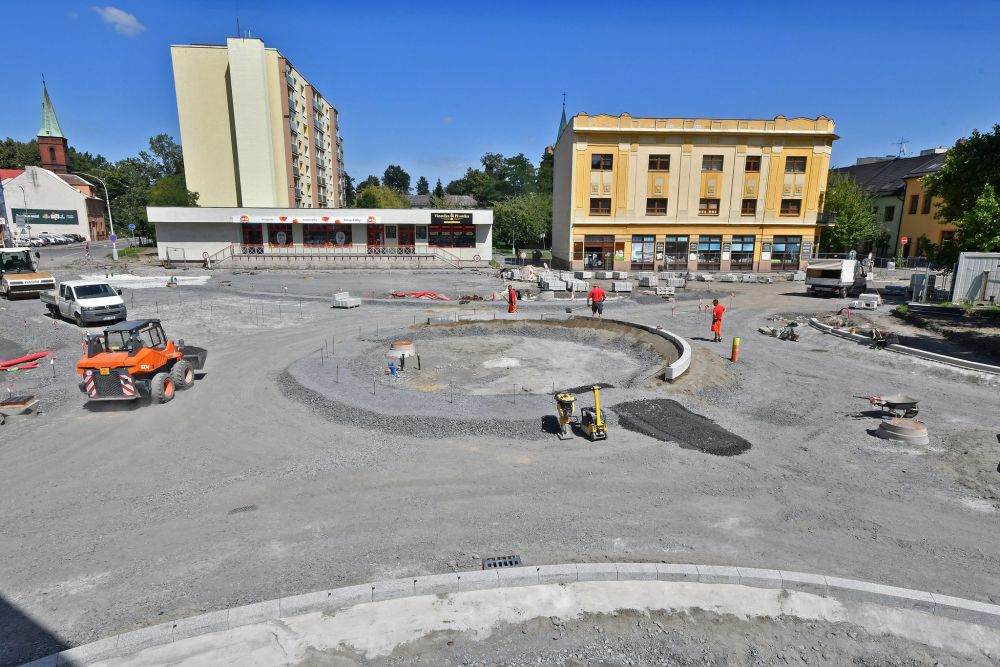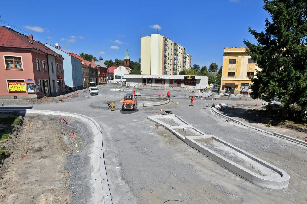 Fotografie výstavby okružní křižovatky ulice Štefánikova a tř. Dr. E. Beneše v Bohumíně.