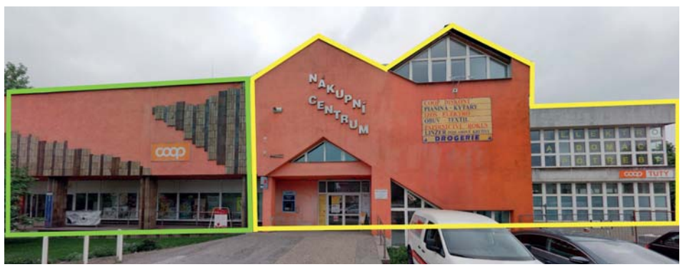 Jedná se o objekt nového nákupního střediska č. p. 1094, který je ve spoluvlastnictví města Vratimov a COOP Beskydy, spotřebního družstva (na obr. 1 vyznačeno žlutě), a dále o přilehlou budovu č. p. 1, jež je ve výlučném vlastnictví COOP Beskydy (na obr. 1 vyznačeno zeleně). S ohledem na jednotný vzhled obou staveb bylo zadání zpracováno společně. Projektovou dokumentaci pro provedení stavby s názvem „Oprava budovy nákupního střediska, ul. Frýdecká, Vratimov“ zhotovila projekční kancelář Kotásek – Projekty, s. r. o. Dokumentace byla dokončena v dubnu 2025. Plánovaná oprava zahrnuje rekonstrukci vnějšího pláště obou budov (fasády), opravu sedlové střechy, výměnu oken a okenních sestav, opravu hromosvodu a úpravy pochozích ploch v ochozu.
