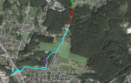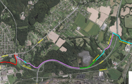 Trasa linky č. 101 od terminálu Hranečník s platností od 2. září 2018. V bodě č. 2 se nachází stávající konečná LDN. Původně se s parciálními trolejbusy počítalo v jižním směru dále po Těšínské, kde je osídlení o něco větší. Ve vzdálené minulosti však byl předpoklad táhnout po Těšínské troleje, výhledově až do Havířova. (zdroj: mapy.cz)