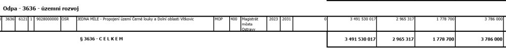 Vlastně ani v roce 2026 se projektová příprava významněji neposune. Na letošní rok má být dle návrhu rozpočtu města na projekt „JEDNA MÍLE – Propojení území Černé louky a Dolní oblasti Vítkovic“ alokována částka 3 786 000 Kč. Přičemž celková předpokládaná částka na celý záměr je 3,5 mld. Kč. Tedy částka, která při zohlednění dalších záměrů města v rozpočtu rozhodně není a dlouho nebude.