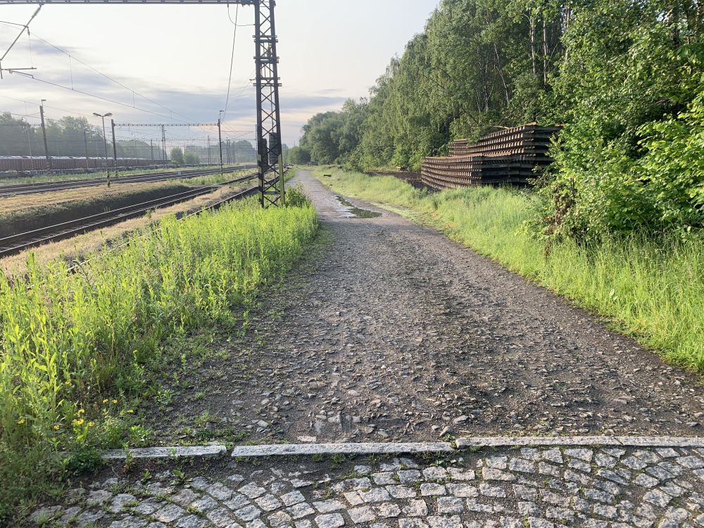 Cesta to je vskutku zajímavá. Na krátkém úseku se střídá hned několik povrchů. Nádraží se však již blíží. Po zcela rozbité štěrkové cestě se dostaneme na část cesty dlážděné. Následně pokračuje úsek opět se štěrkem, po kterém se opět dostaneme na dlážděný kousek. Dlažba končí opět štěrkem, nebo už jen spíše hlínou a jsme u nádraží.