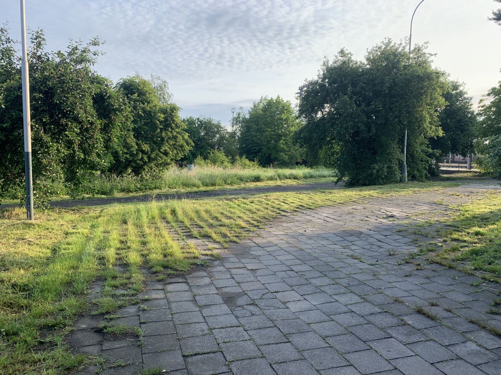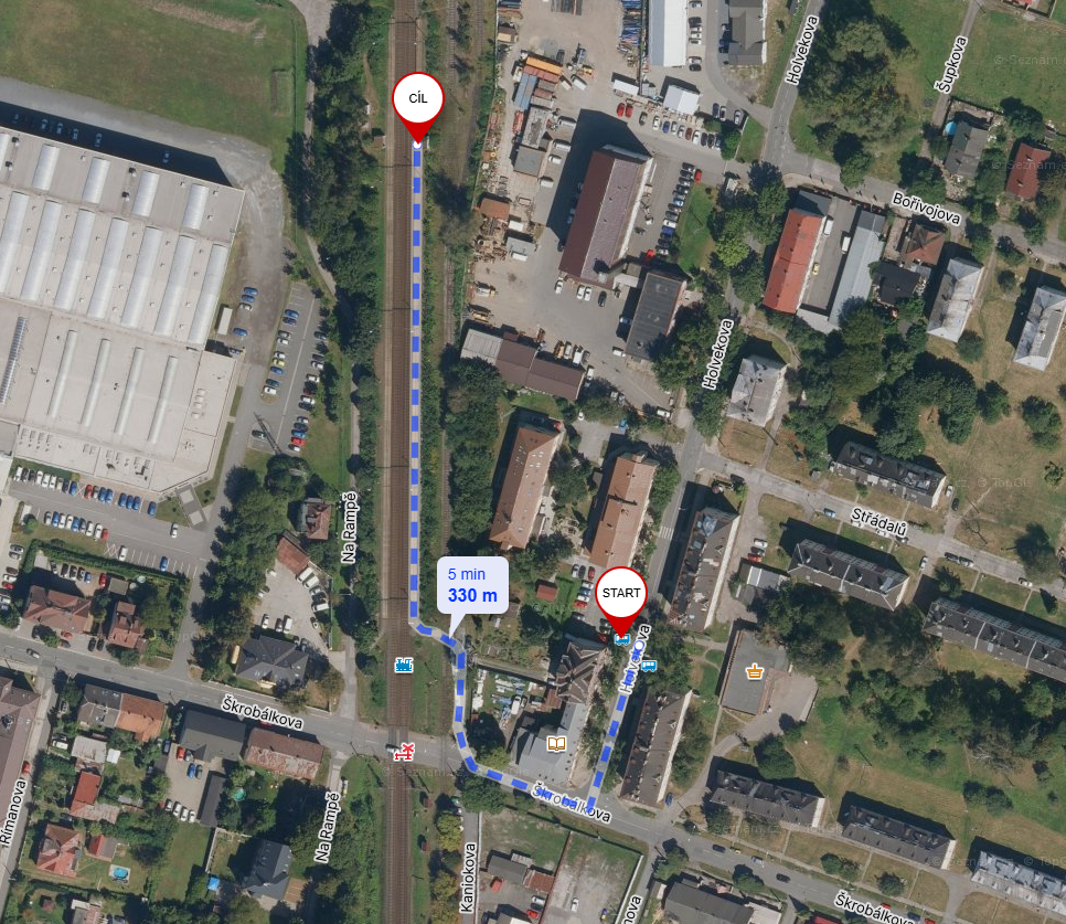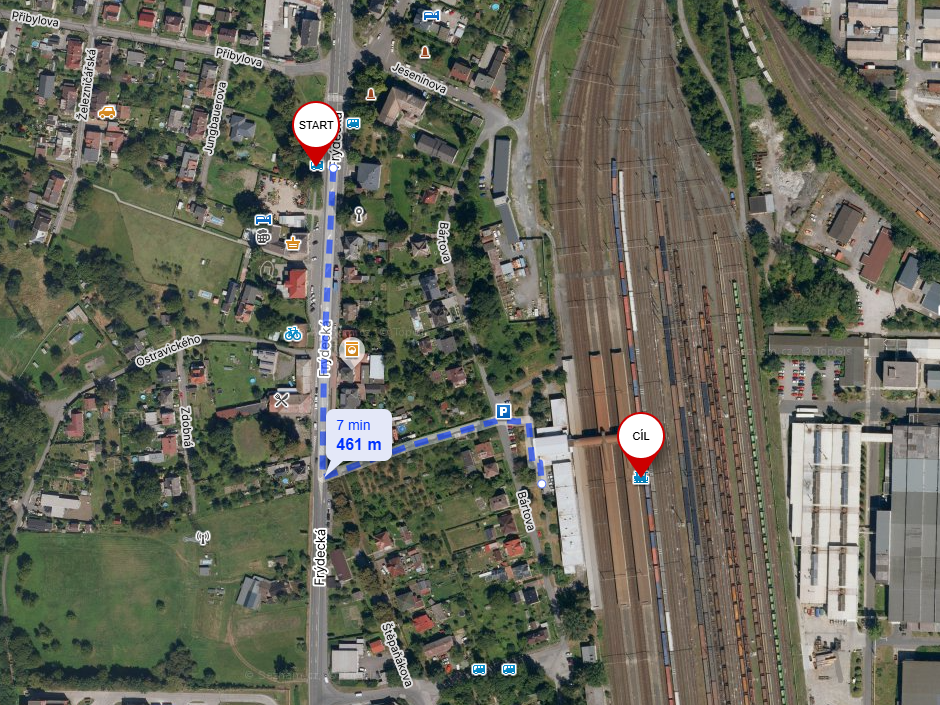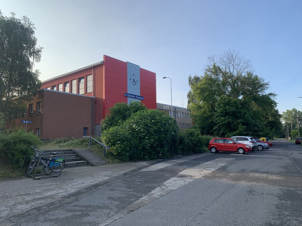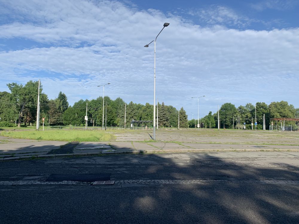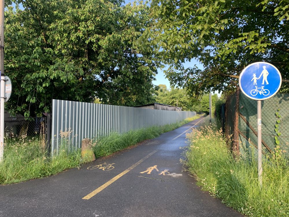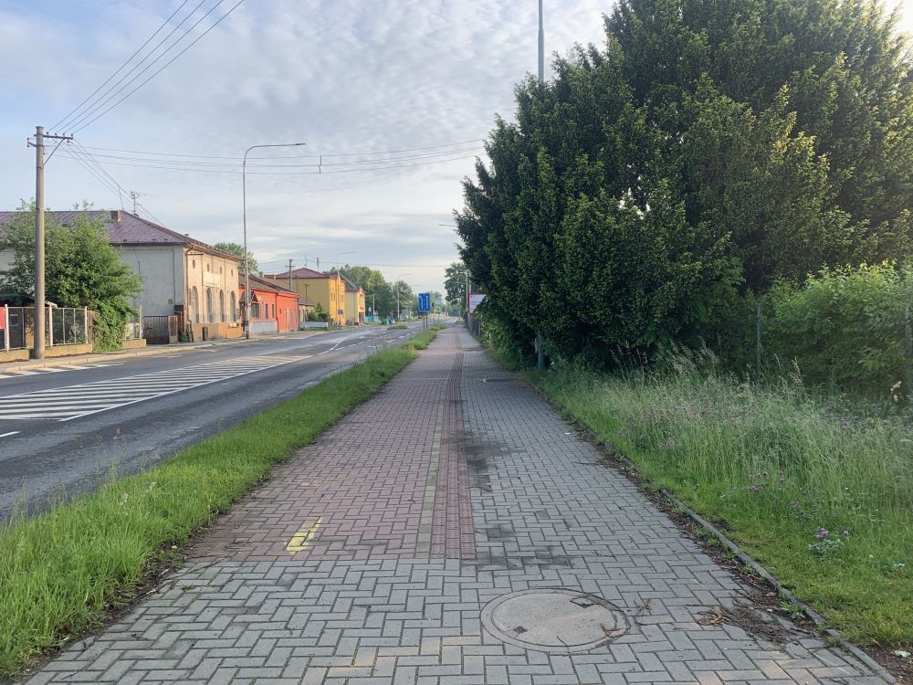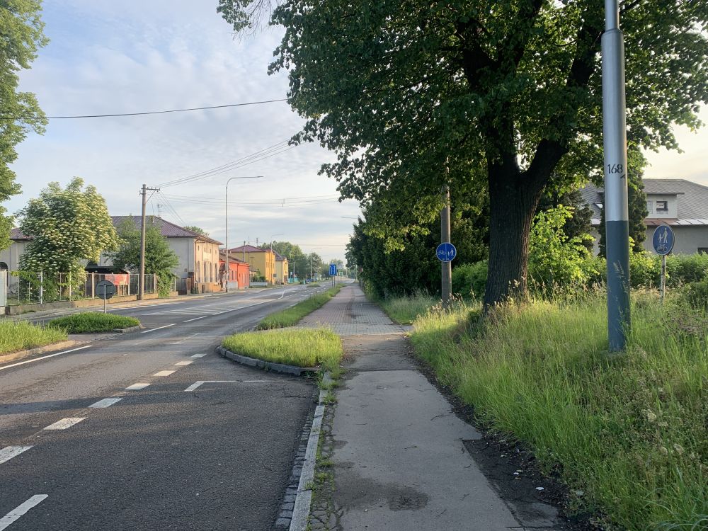 Pohled směrem ke sdílené stezce, která vás dovede k frekventovanější zastávce MHD Kunčice škola.