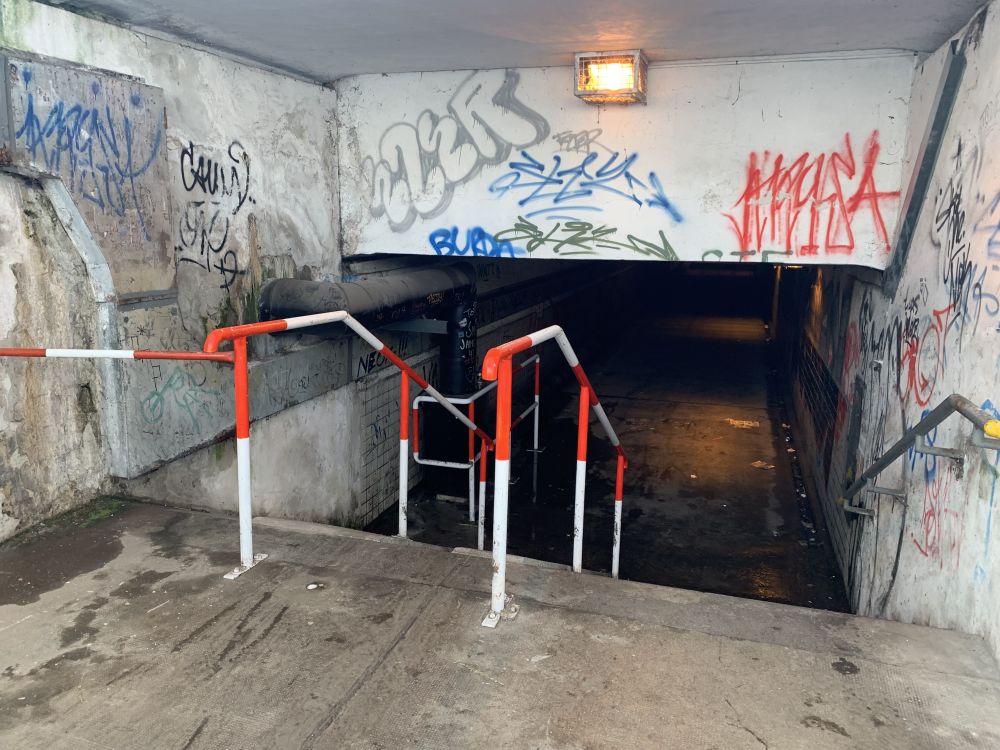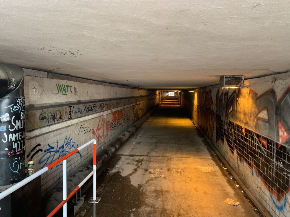 Cesta k „legendárnímu“ podchodu pod kolejištěm, který vede k areálu bývalé Nové Huti.