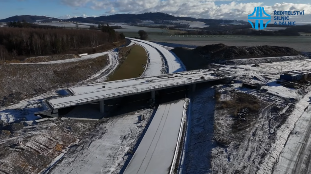 Záběry z dronu zachycující výstavbu Palačovské spojky, která se dotýká jihozápadní hranice Moravskoslezského kraje. Záběry byly pořízeny v prosinci 2025.