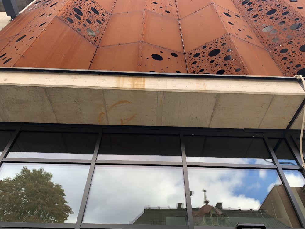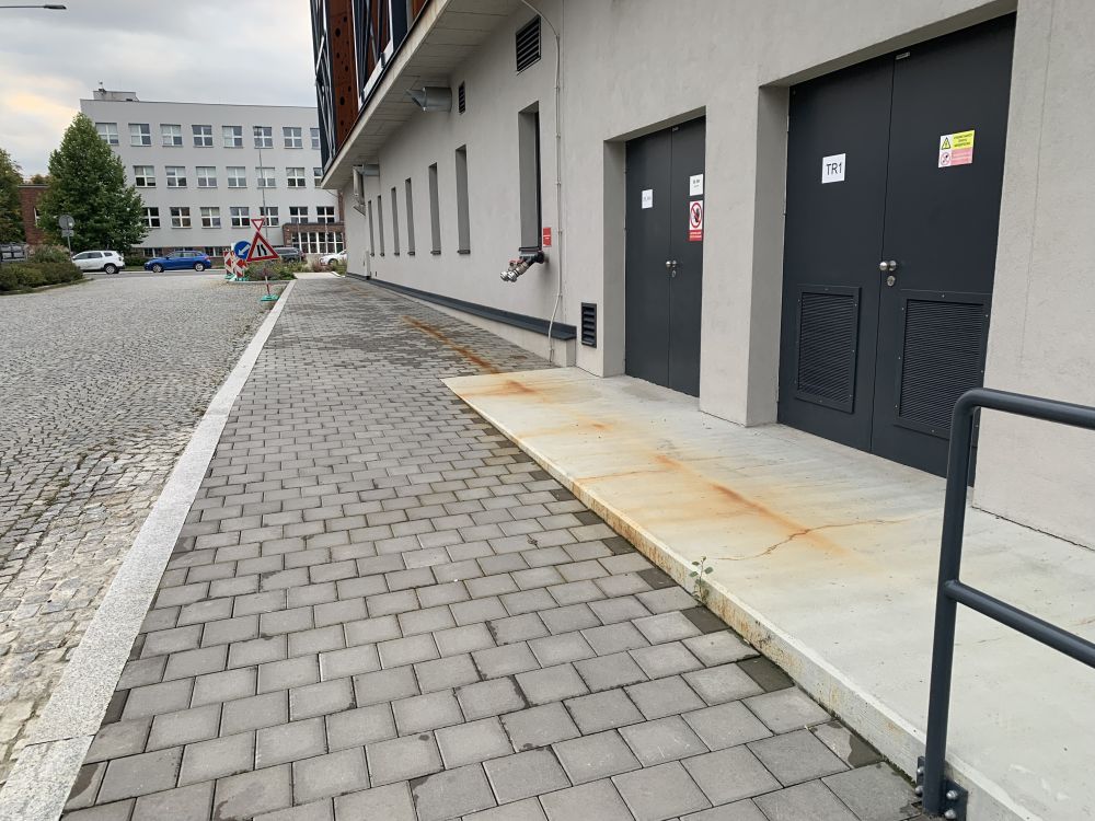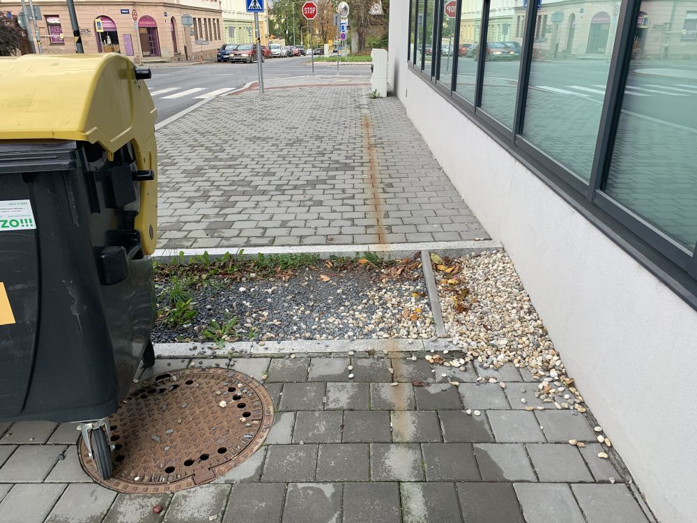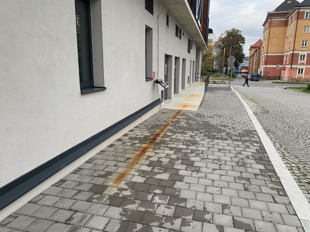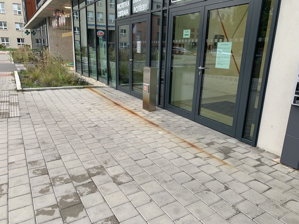 Nevhodně zvolené materiály se špatným konstrukčním řešením „přinášejí své ovoce“. Po roce od otevření pakovacího domu u Městské nemocnice Ostrava je jeho okolí výrazně znečištěné.