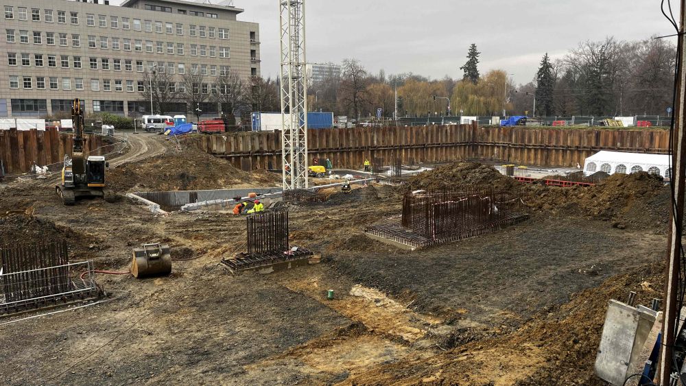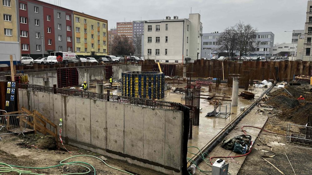 Aktuální fotografie výstavby parkovacího domu u krajského úřadu v Ostravě.