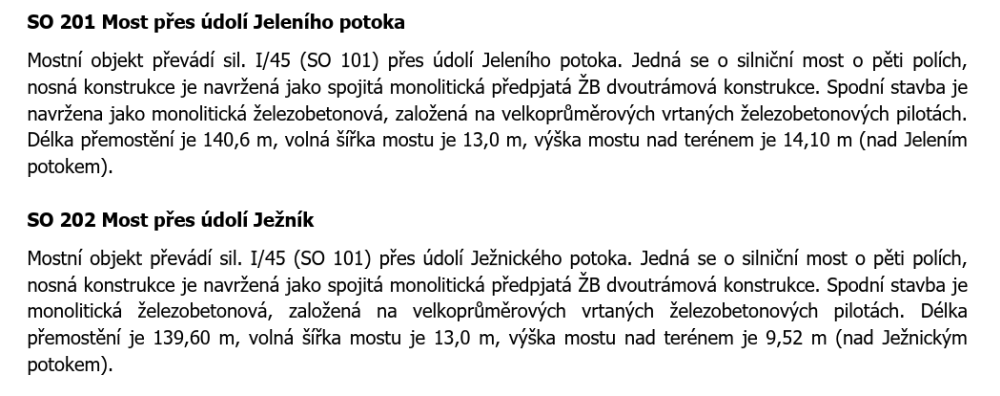 Celá stavba je rozdělena na desítky menších stavebních objektů, z dokumentů vybíráme ty nejzajímavější: