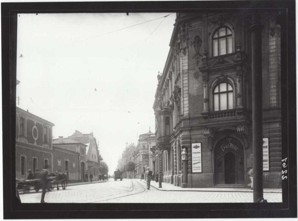 Snímek pořízený v křížení dnešních ulic Olomoucká a Krnovská. Pohled směrem do Olomoucké ulice.