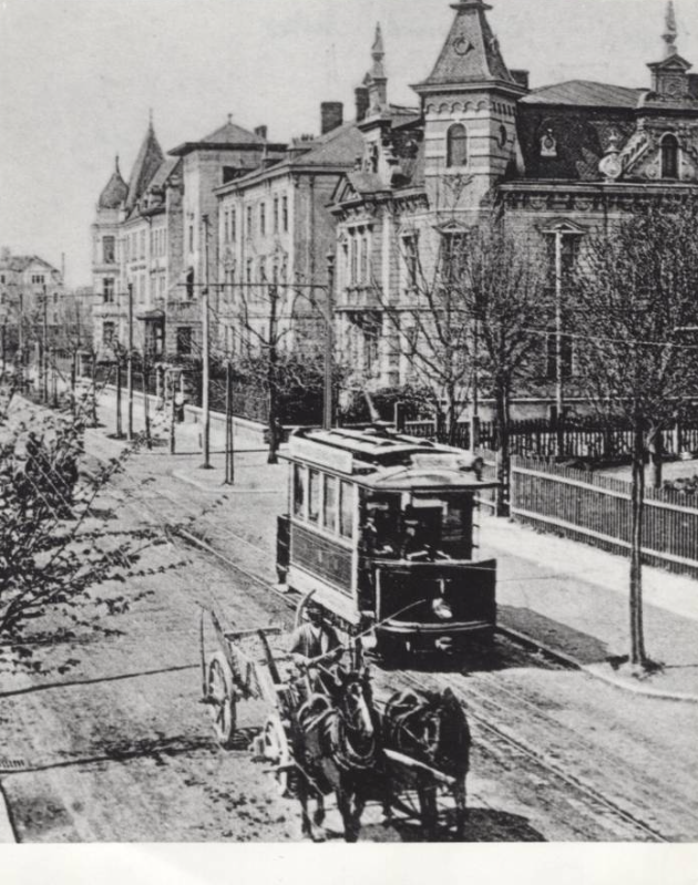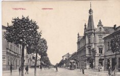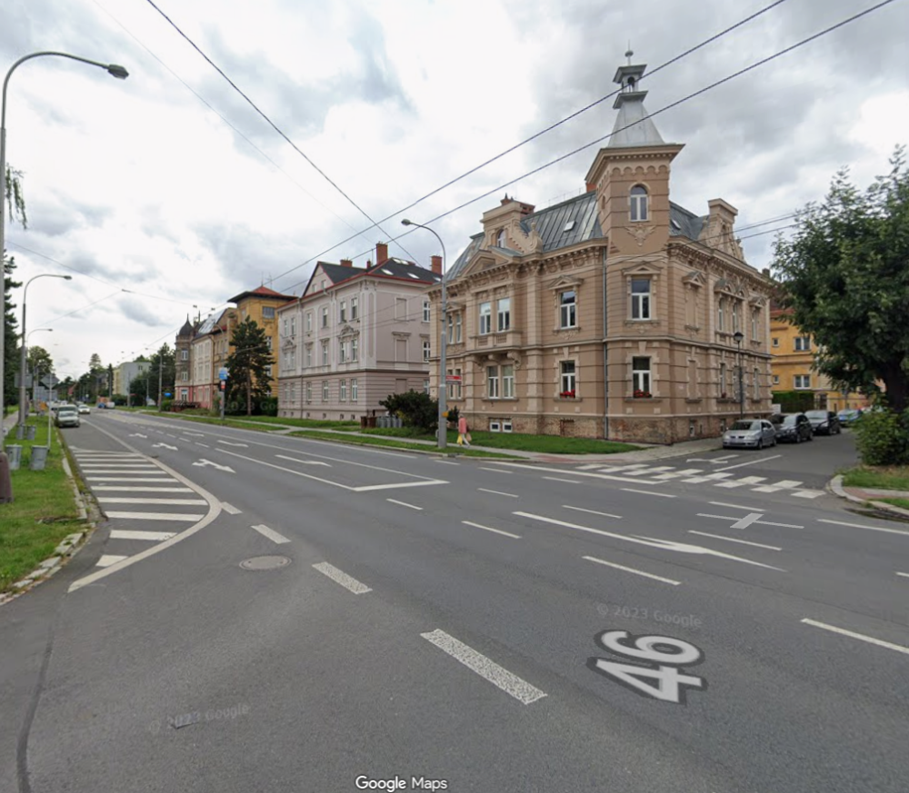 Ulice Olomoucká v místech, kde se dnes kříží s ulicí Palackého. Pohled směrem k nemocnici.