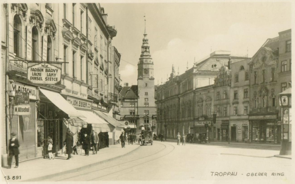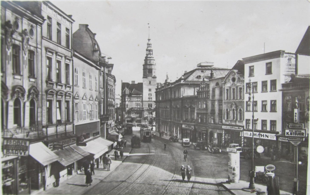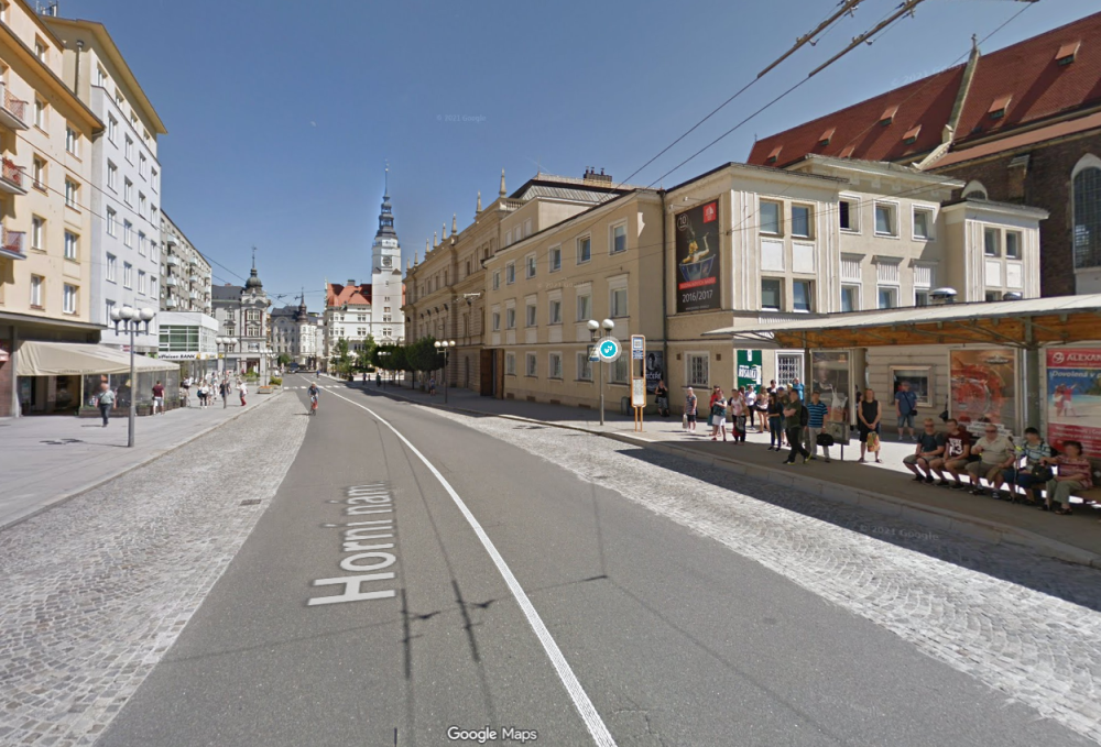 Podhled z ulice U Jaktařské brány směrem na Horní náměstí.
