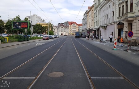 Ale je tam jedna menší pozitivní změna, je zastavěna proluka za narožním domem. :-)