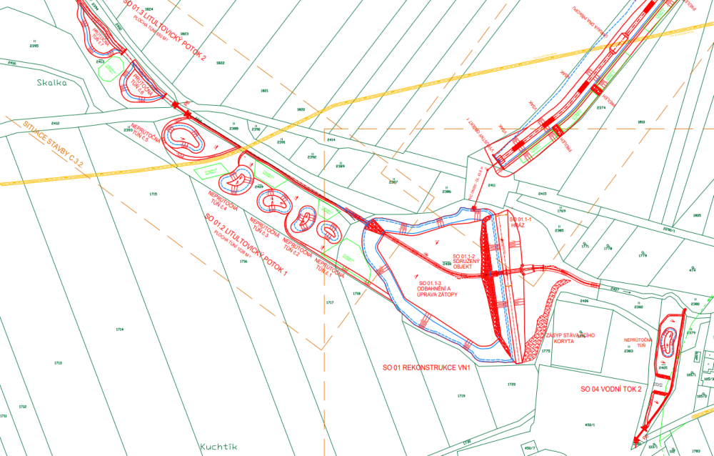 V článku je následně umístěn výřez části koordinační situace s přibližně zachyceným současným stavem. Úpravy v obci Zátor začínají u silničního mostu a autobusové zastávky Zátor, Iktus. Zde rozšíření koryta, kvůli stávajícím domům, není až tak velké.
