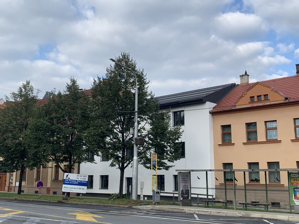 Aktuální fotografie novostavby na místě jednopodlažního domu na ulici Ratibořská v Opavě.