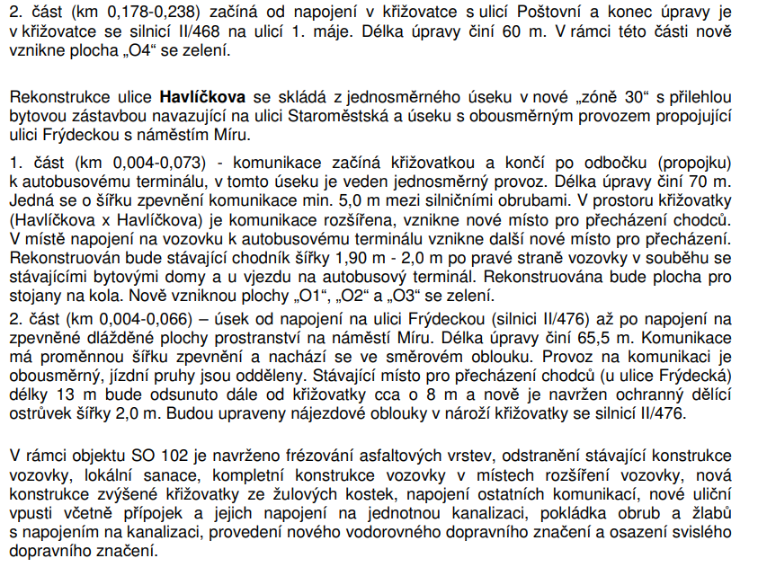 Celý uliční prostor je navržen jako „zóna 30“. V místě u autobusového nádraží vzniknou nové přechody pro chodce. Nově zvýšené křižovatky budou provedeny ze žulové dlažby. Více k projektu v následujícím textu: