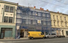 Aktuální fotografie rekonstrukce bytových domů na ulici U Tiskárny v centru Ostravy. Budovy jsou v majetku obvodu Moravská Ostrava a Přívoz.