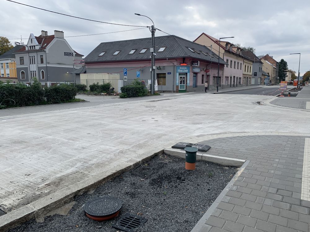Fotografie byly pořízeny 12. října 2025, před vyznačením dopravního značení a výsadbou plánované zeleně.
