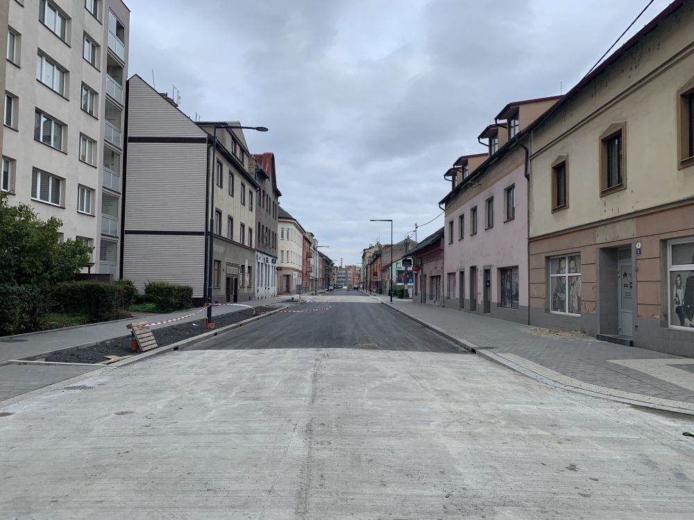 Fotografie rekonstrukce ulice Přemyslovců v Ostravě-Mariánských Horách pokračuje a v některých úsecích je z větší části hotová.