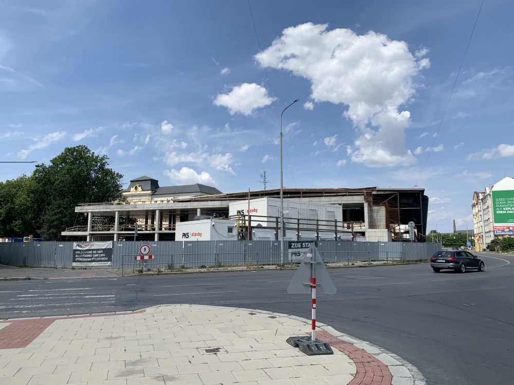 V pozadí za zimním stadionem lze rovněž spatřit rekonstrukci tělocvičny Mendelova gymnázia.