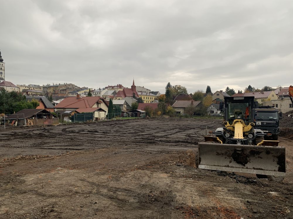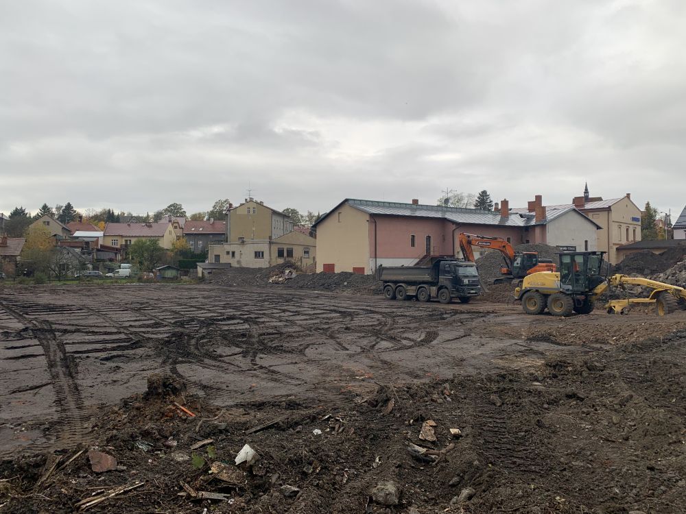 Pozemek pro výstavbu obchodního centra v Příboře je z větší části dočištěn a připraven pro novou výstavbu.