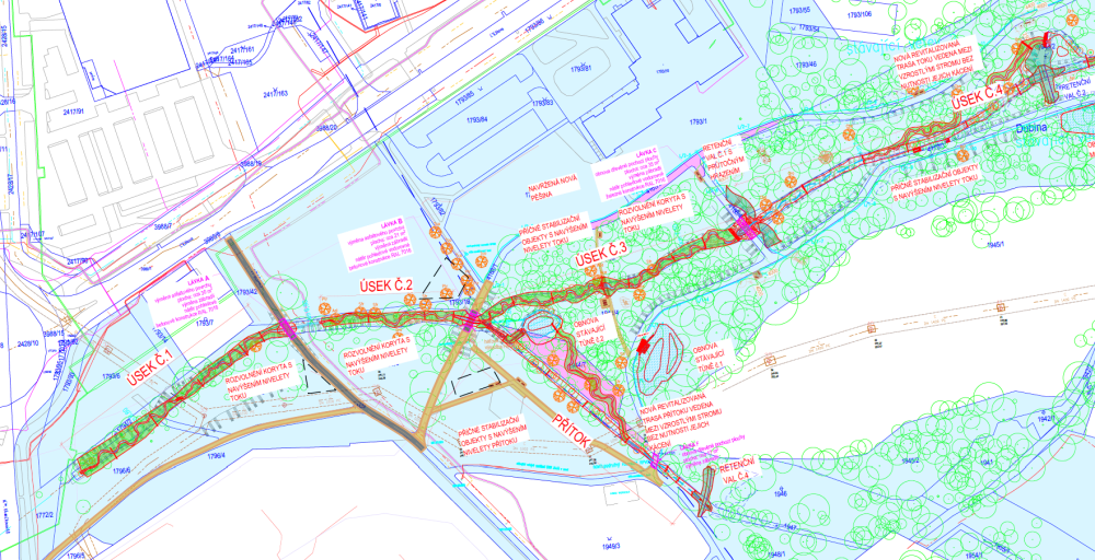 Předmětem veřejné zakázky je revitalizace toku a oblasti lesoparku Dubina.