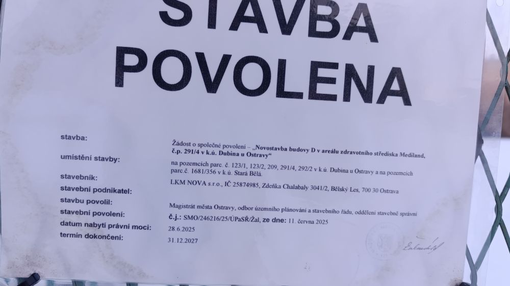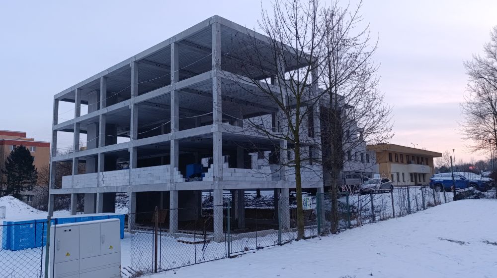 Aktuální fotografie výstavby rozšíření zdravotního střediska Mediland v Ostravě.