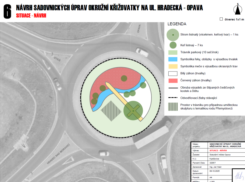 Město Opava připravuje sadovnické úpravy okružní křižovatky ulice Hradecká. Za tímto účelem byla vypsána veřejná zakázka.