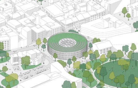Budovy nazýváme Místnostmi, protože jim je společný princip uzavření. Vnitřek mnoha Místností je buď prázdný nebo obsazený jedním či dvěma velkými objekty, které definují typ budovy (koncertní dům, divadlo, výstavní síň…) a ponechávají zbytek objemu mezi vnitřním objektem a vnější jednoduchou obálkou pro cirkulaci. Tento okrajový prostor zjednodušuje přístup a vytváří flexibilitu vnitřní orientace. Propojení vnitřku Místností s ostatními prostory na pozemku je precizně kontrolované. Zvenčí relativně nevýrazné Místnosti mají několik velkých otvorů, které propojují interiér a exteriér v místech, kde se objekty interiéru setkávají s hranicemi Místnosti. Toto uspořádání jednak poodhaluje vnitra budov, které zevnitř tajemně září coby lucerny, zároveň ale umožňuje otevření vnitřních prostorů pro představení směrem ven k Mýtinám a k Divočině. Například pódium Centra moderní hudby čelí vnitřnímu hledišti, může se však také otevřít na sousední Mýtinu pro koncert pod širým nebem.Ekologie klastru