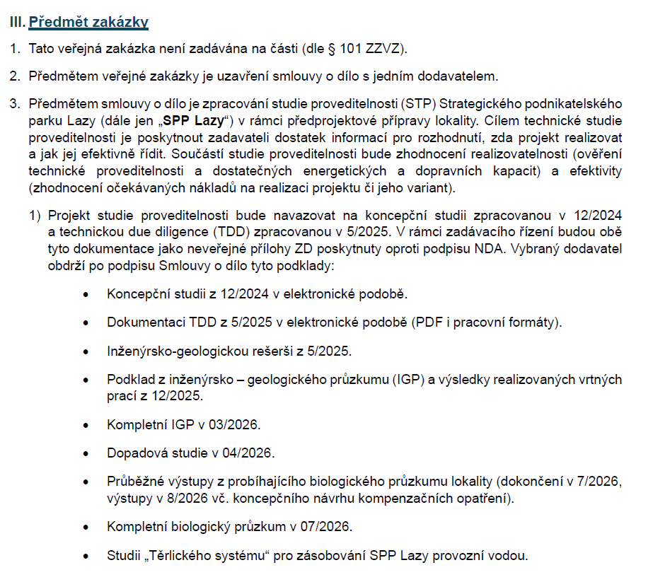 Státní investiční a rozvojová společnost, a.s. vypsala veřejnou zakázku „Studie proveditelnosti SPP ( Strategický podnikatelský park) Lazy.
