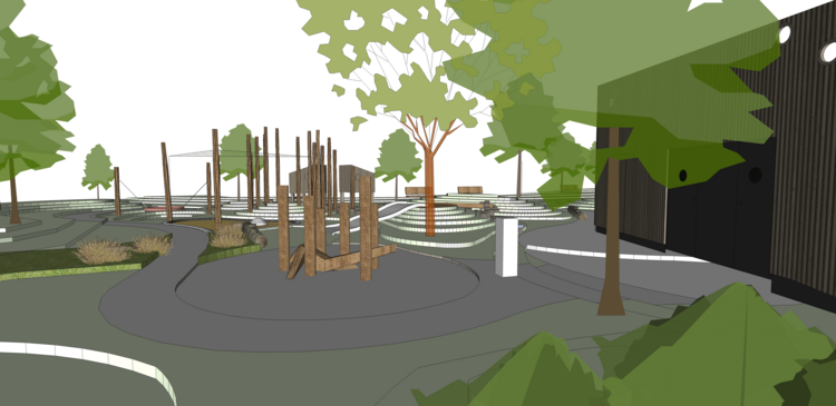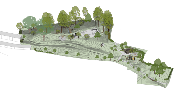 Hřiště je celkově navrženo v přírodním charakteru s neunifikovanými herními prvky. Jednotlivé větší herní prvky využívají morfologie terénu. Prostor je v zimě využíván k sáňkování. Tato činnost, která se s postupující klimatickou krizí dá provádět jednotky dnů v roce, bude zachována. Rozsah prací a vysoká úroveň návrhu se dá v rámci Moravskoslezského kraje považovat za výjimečný počin.