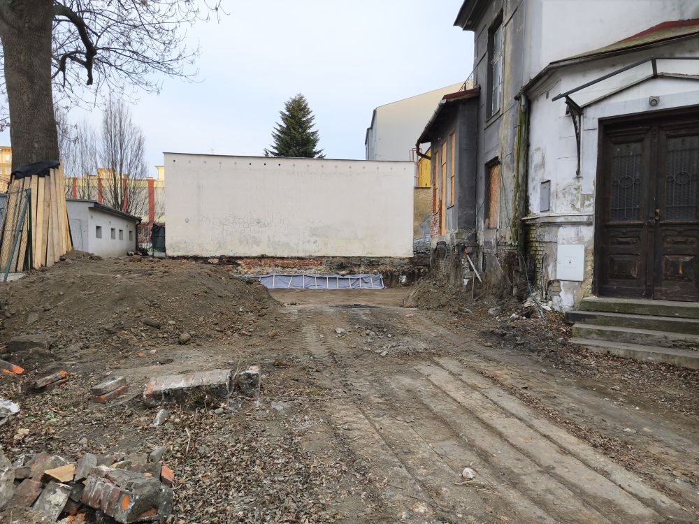 U záměru přestavby původní vily v blízkosti Husova sadu v centru Ostravy proběhlo vyklizení dvorní části a stavba je připravována pro přístavbu a přestavbu.